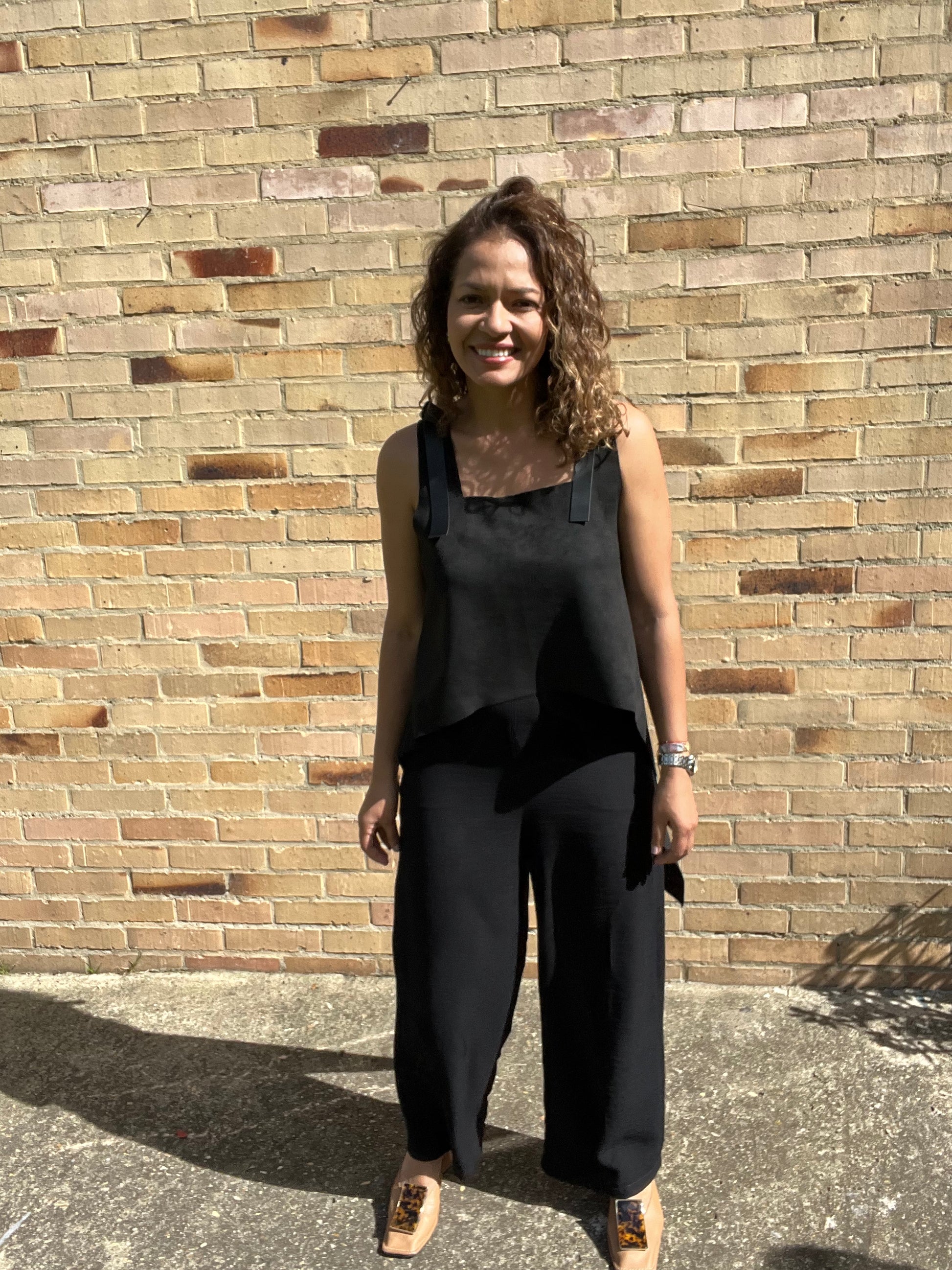Este Top cuenta con dos tiras nudo en cuero 100% que acompañan la prenda dandole fuerza y distincion.