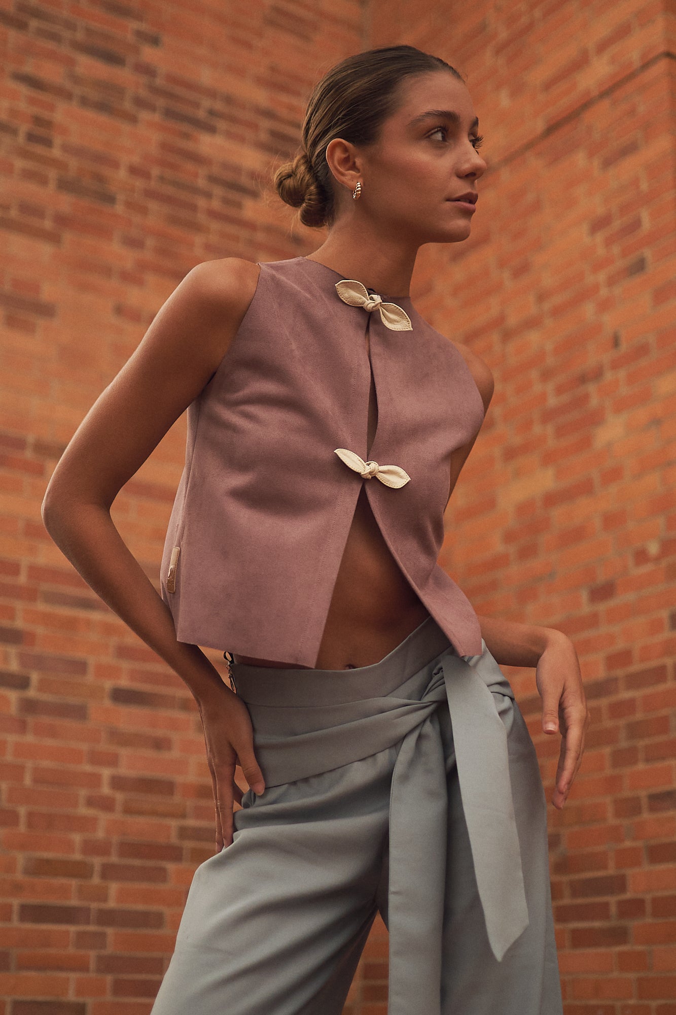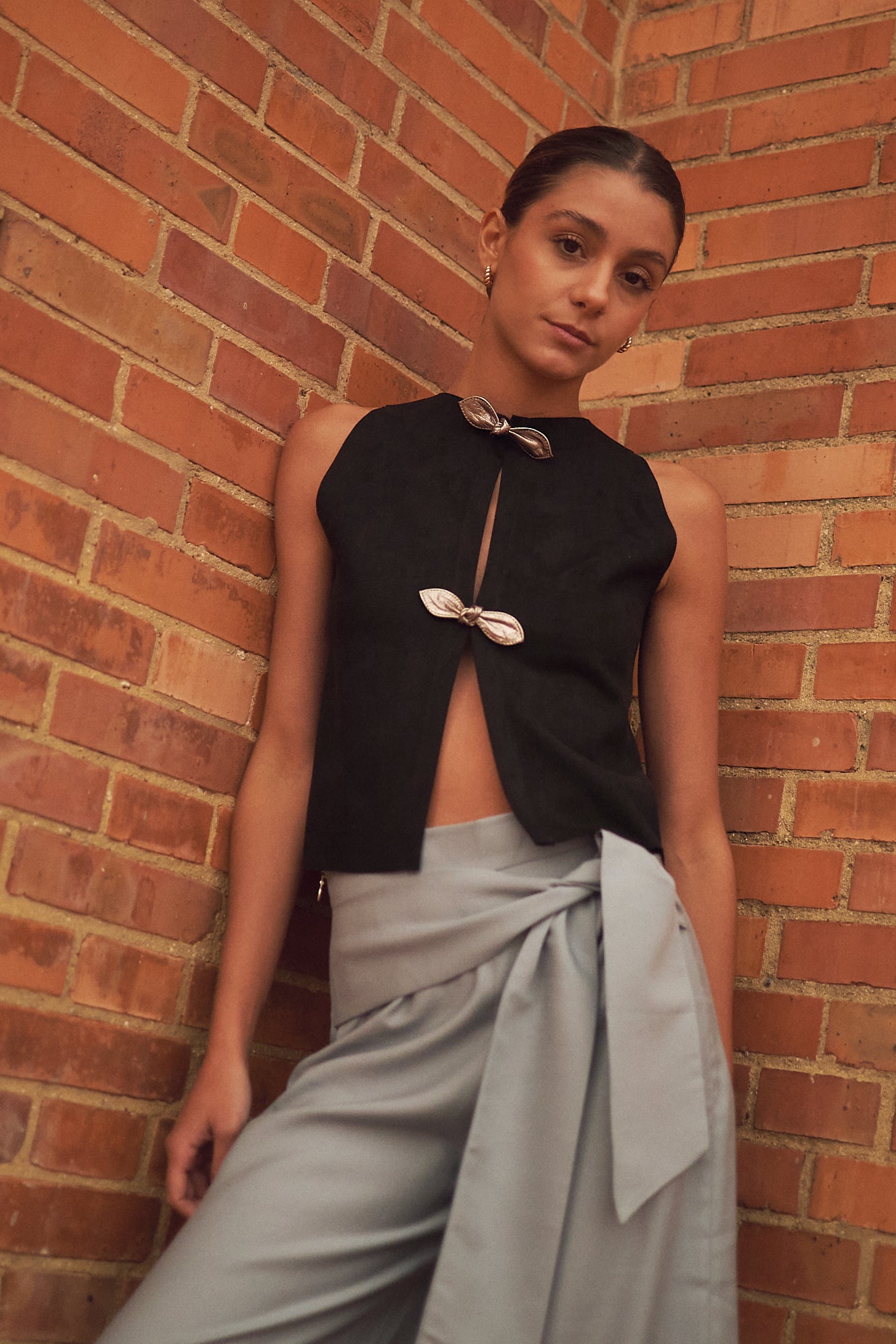Nuestro Top MOÑOS es una mezcla perfecta entre sencillez y delicadeza. Puedes usarlo en ambos lados de la prenda. El MUST que hará que tu silueta y outfit complemente cada momento de tu vida.